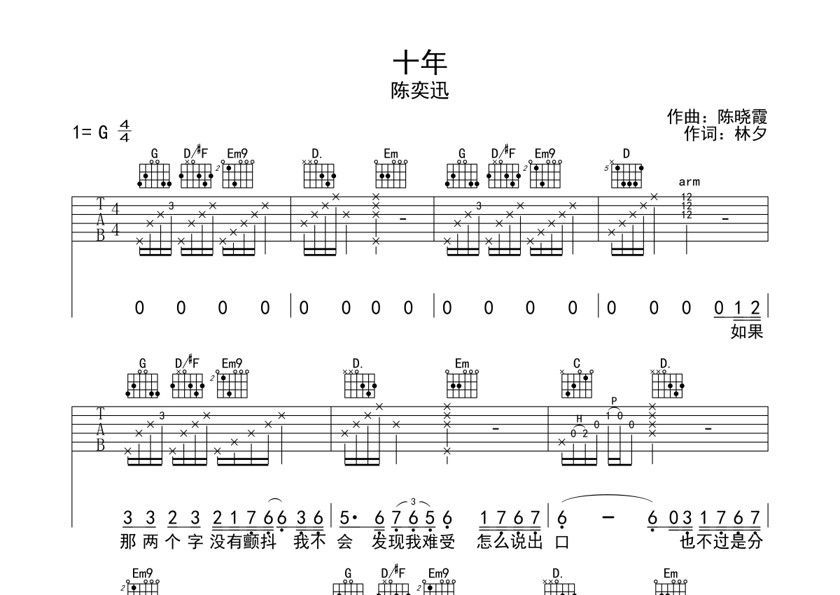 十年吉他谱 - 陈奕迅 - G调弹唱六线谱