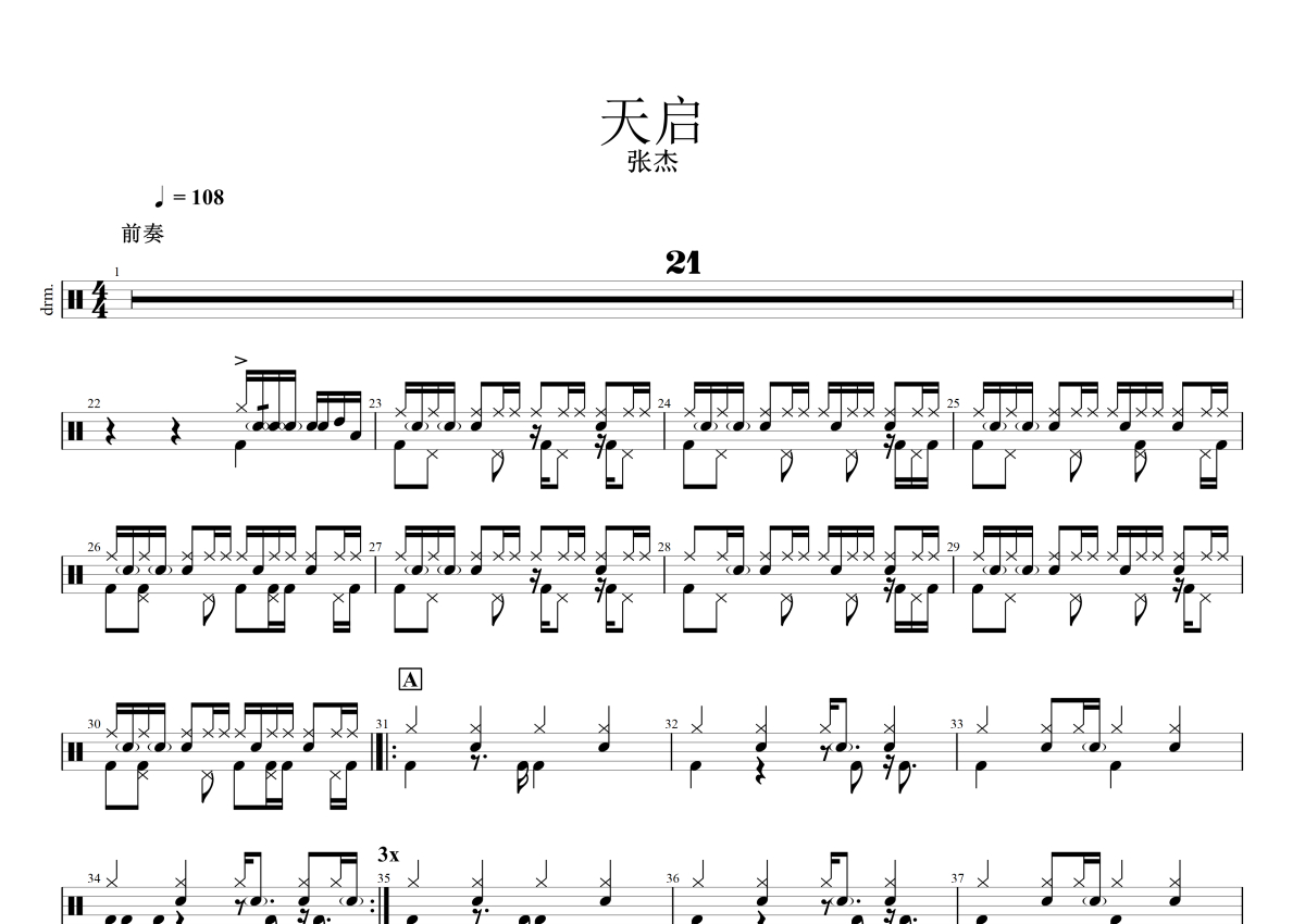 张杰《天启》架子鼓谱