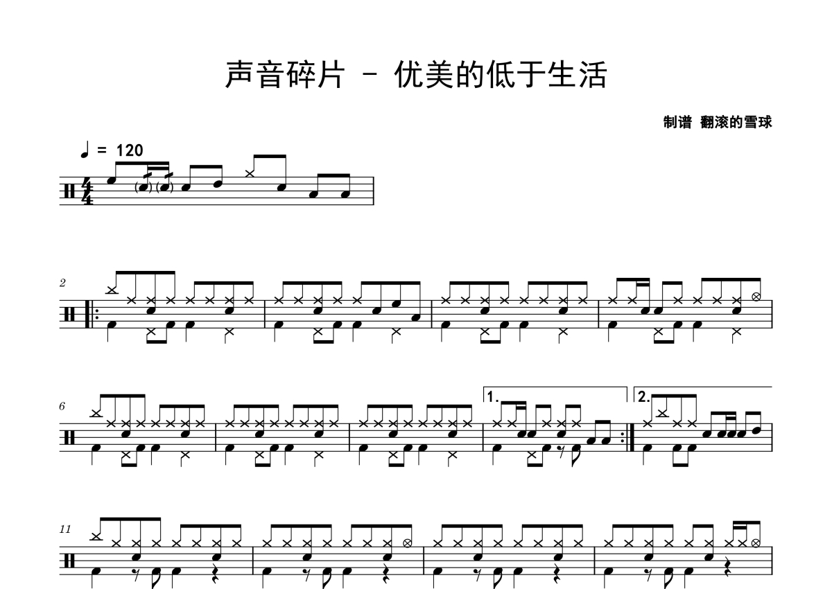 声音碎片《优美的低于生活》架子鼓谱