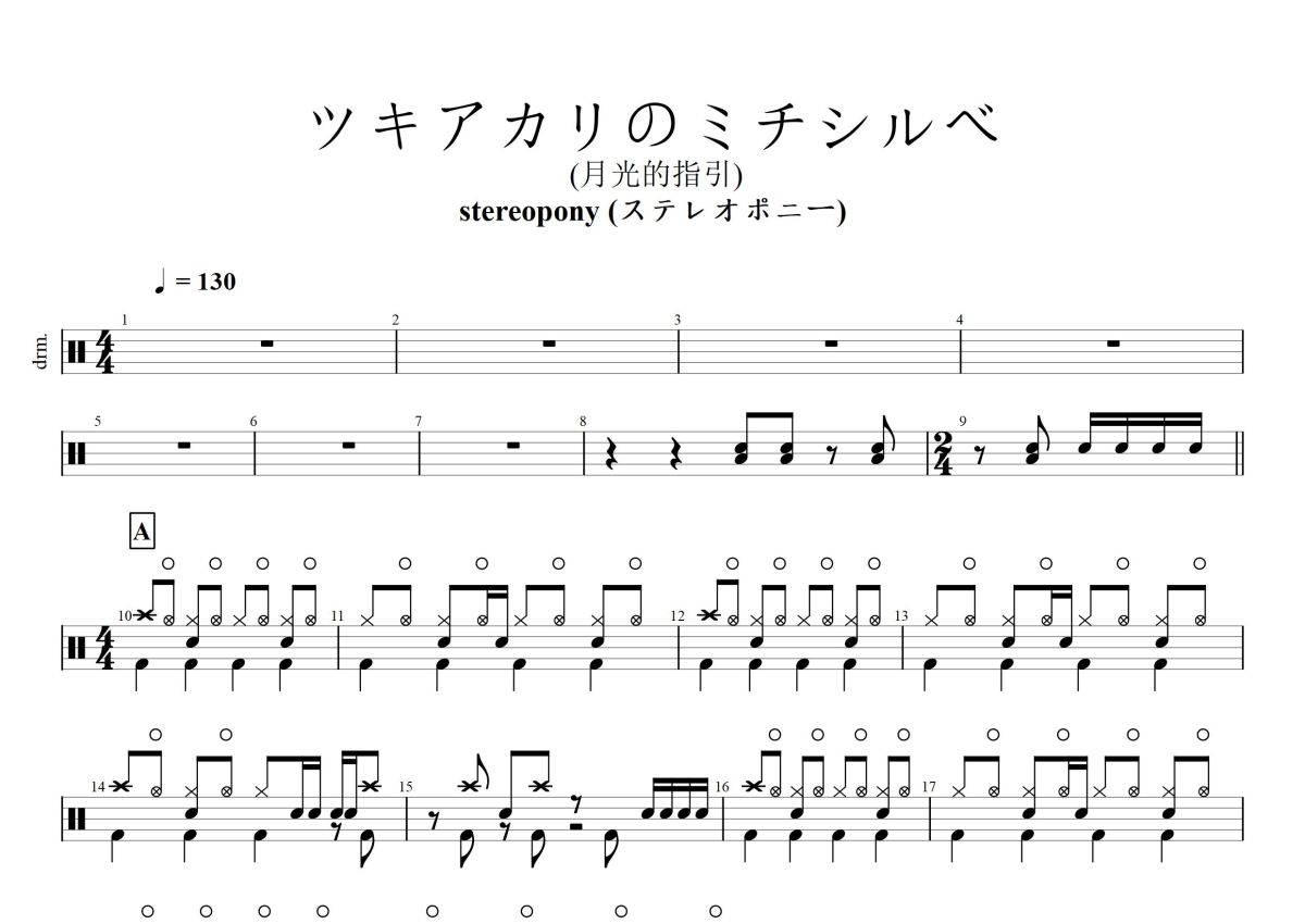 stereopony《月光的指引》鼓谱 - 架子鼓谱