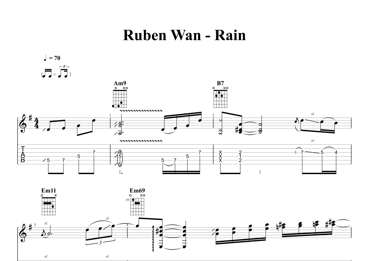 Ruben Wan《Rain》电吉他谱 - 石头音乐原版记谱