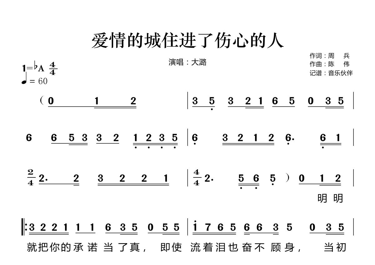 爱情的城住进了伤心的人简谱 - 大潞演唱