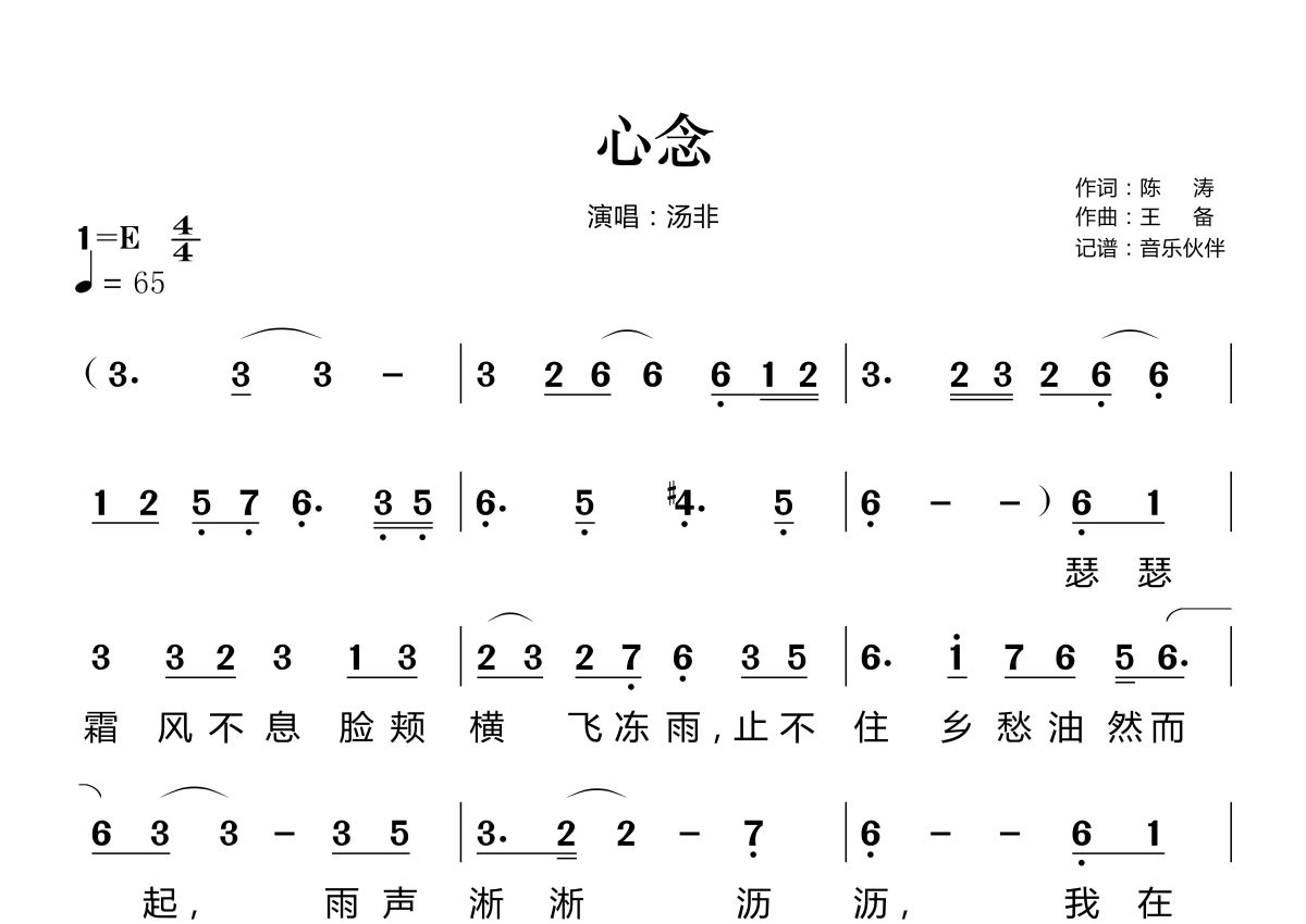 心念简谱 - 汤非演唱
