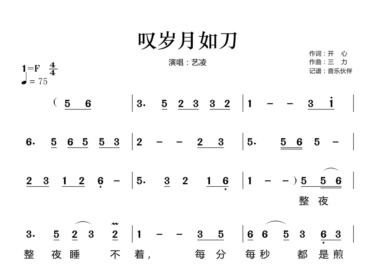 《叹岁月如刀》是艺凌演唱的一首歌曲,这份简谱共有两张高清图谱,图谱由 @音乐伙伴 编配上传。