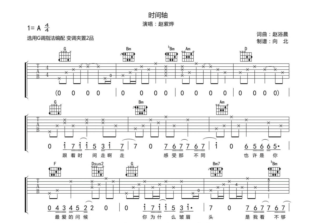 赵紫骅《时间轴》吉他谱 - G调弹唱六线谱