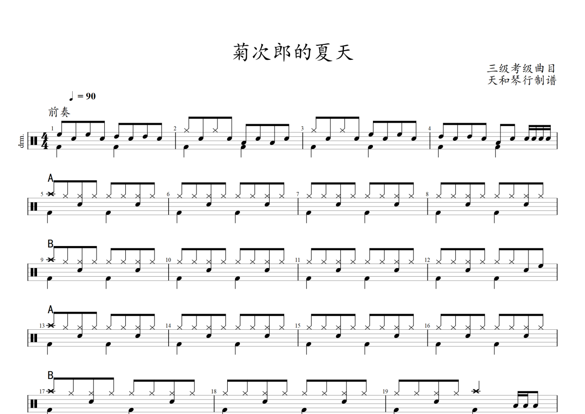 三级考级曲目《菊次郎的夏天》架子鼓谱