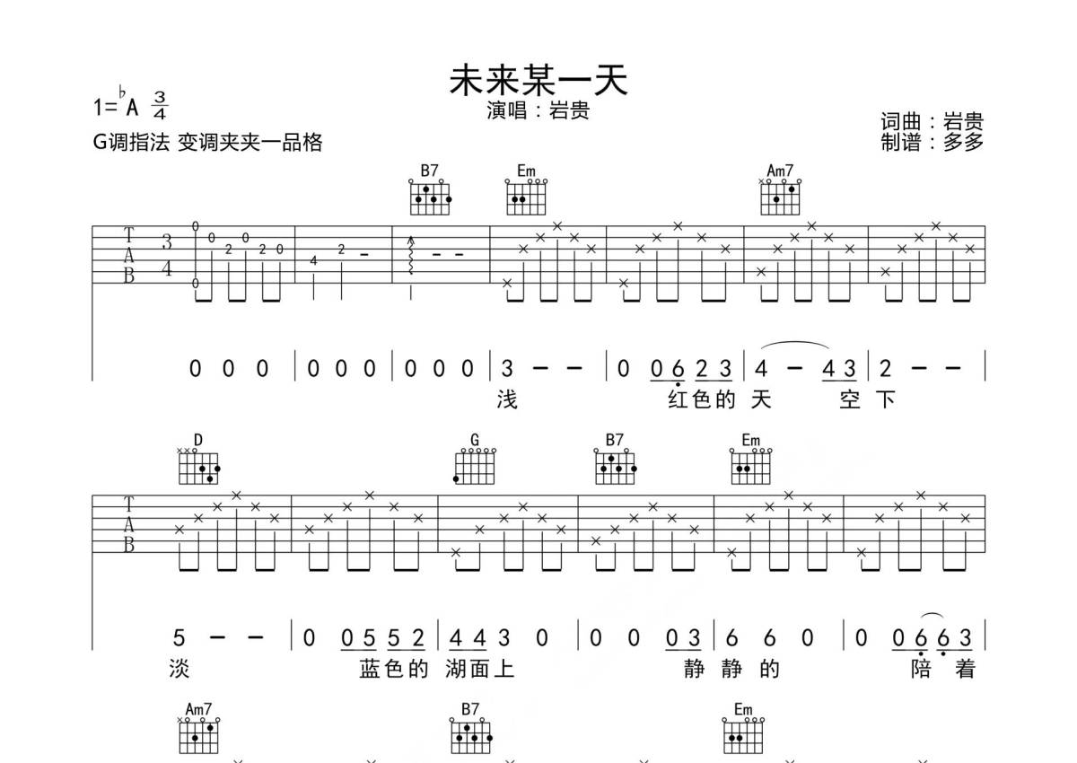 未来某一天吉他谱 - 岩贵 - G调弹唱六线谱