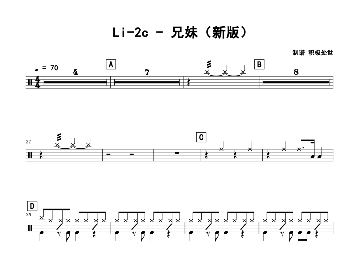 L-2C《兄妹》架子鼓谱 - (新版)