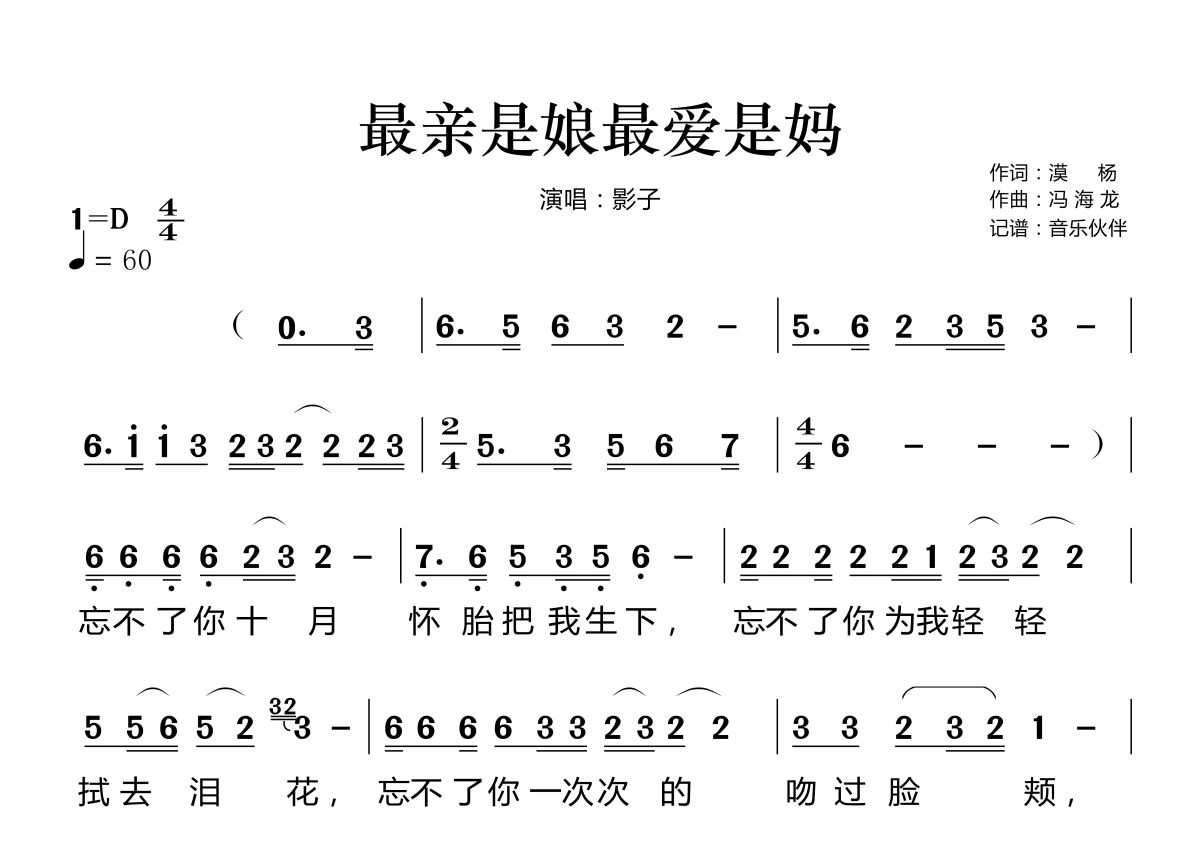 最亲是娘最爱是妈简谱 - 影子演唱