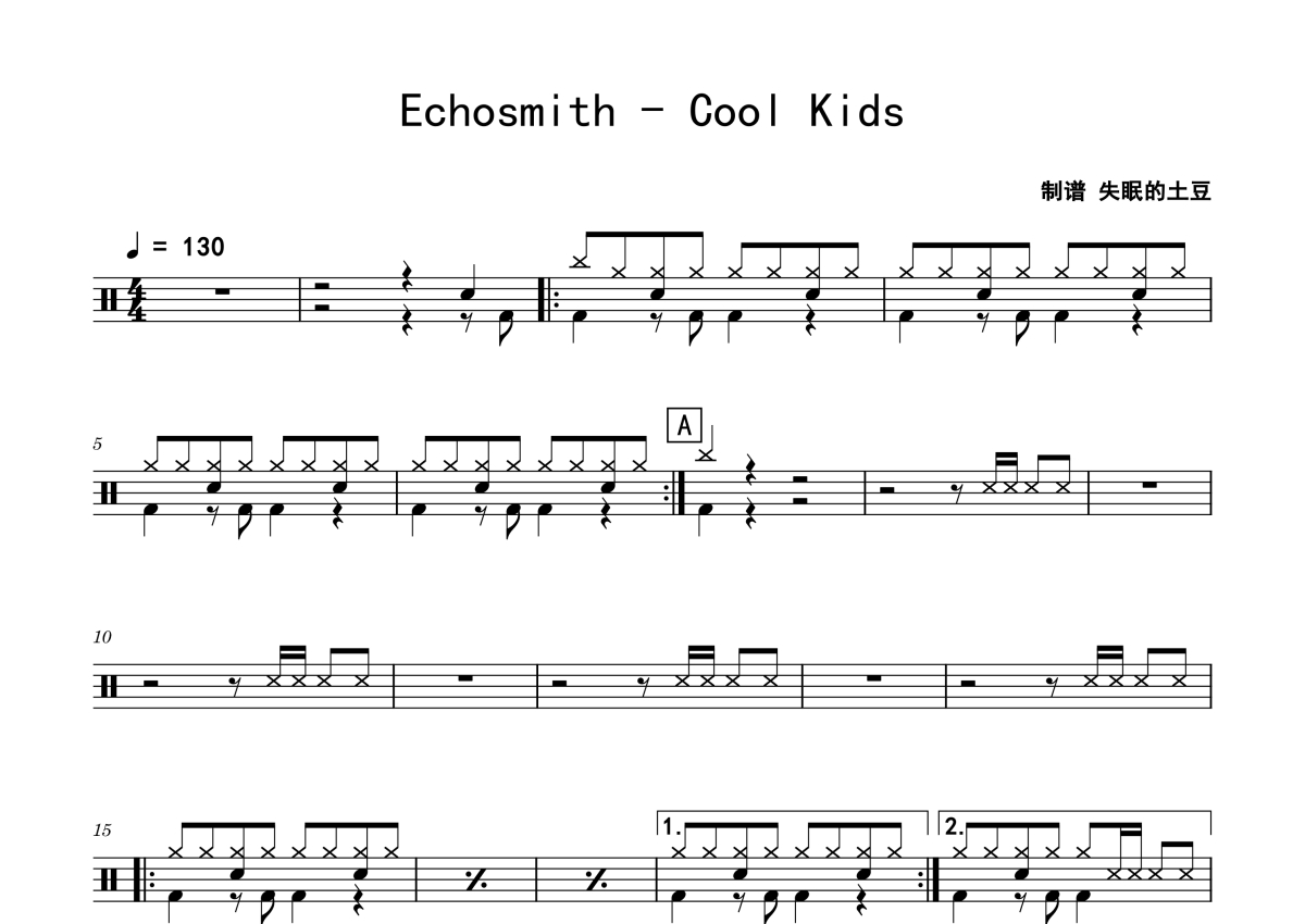 Echosmith《Cool Kids》架子鼓谱