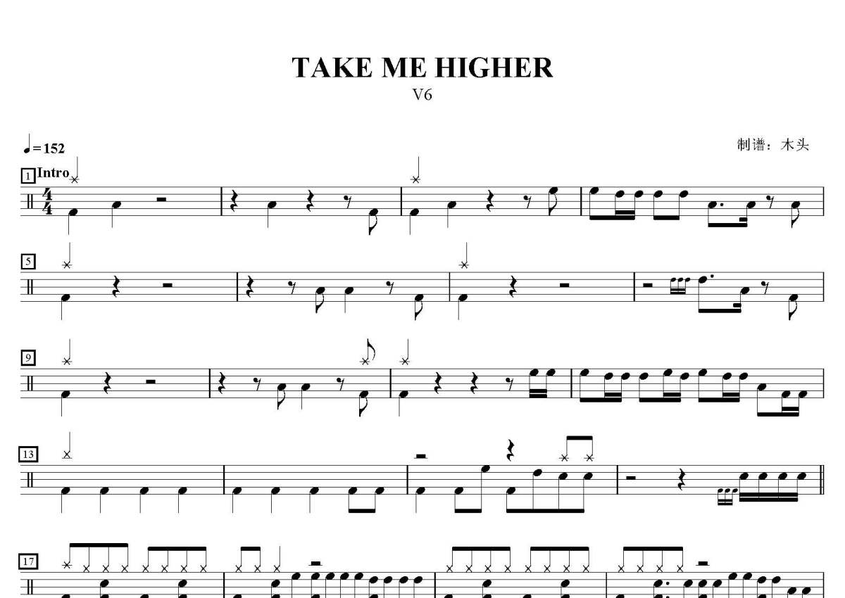 V6《TAKE ME HIGHER》鼓谱 - 架子鼓谱