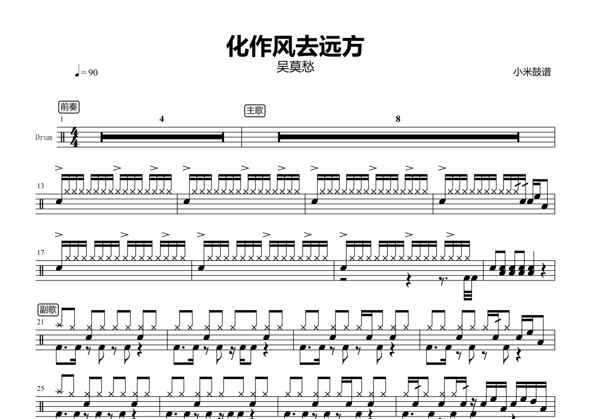 化作风去远方架子鼓谱 - 吴莫愁