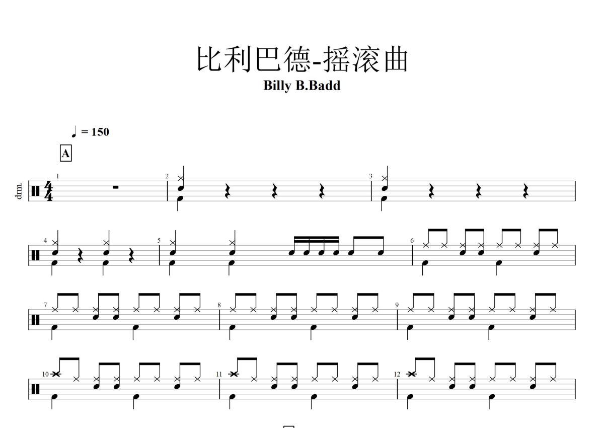 Billy B.Badd《比利巴德-摇滚曲》鼓谱 - 架子鼓谱