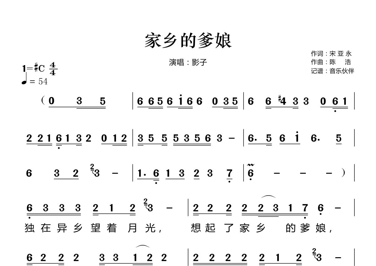家乡的爹娘简谱 - 影子演唱