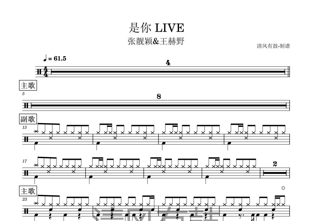 张靓颖/王赫野《是你》架子鼓谱 - Live