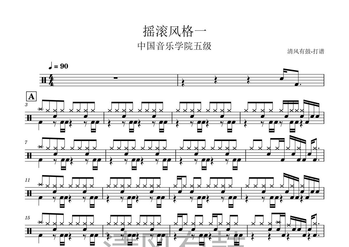 摇滚风格一架子鼓谱 - 中国音乐学院爵士鼓考级