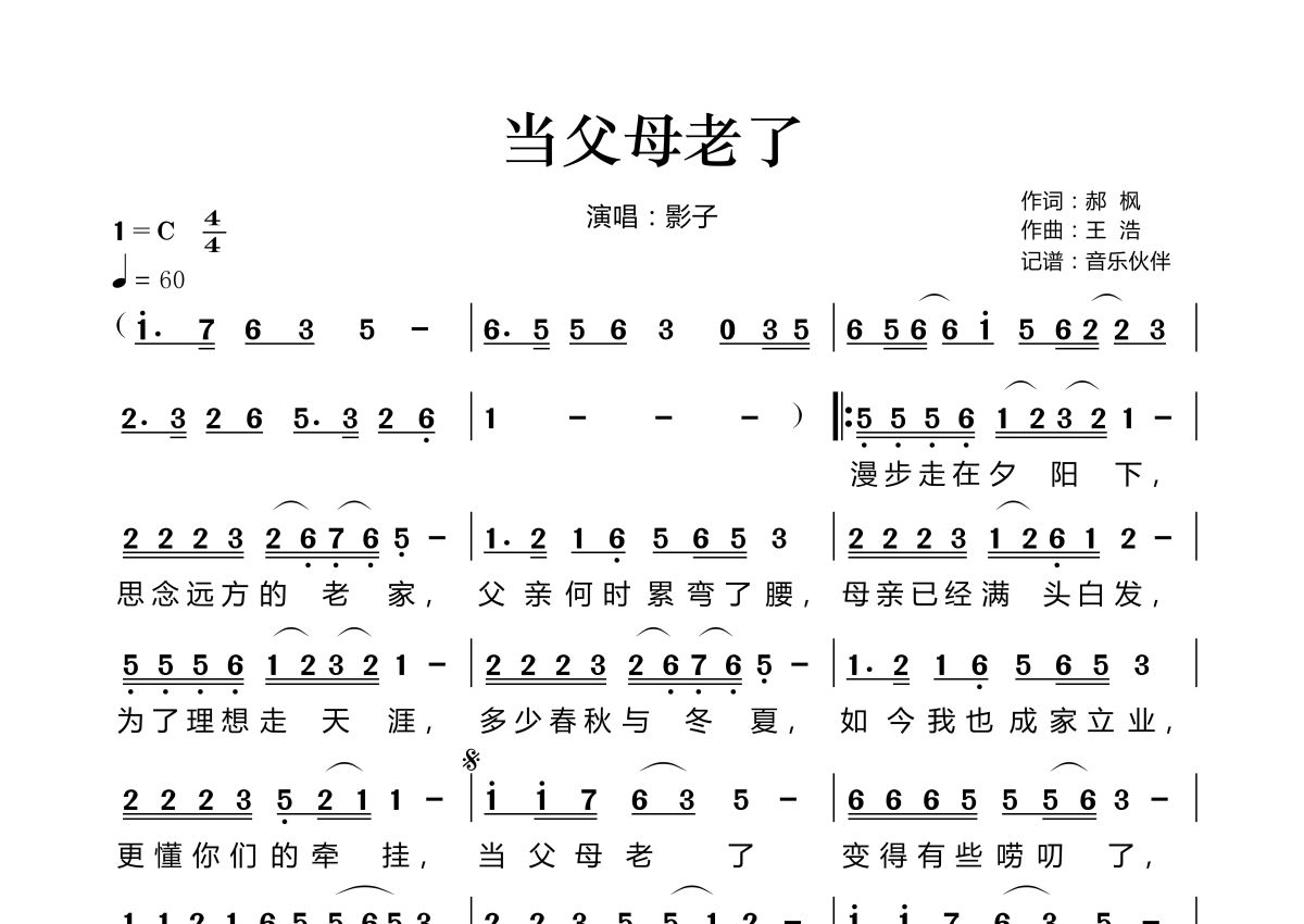 当父母老了简谱 - 影子演唱