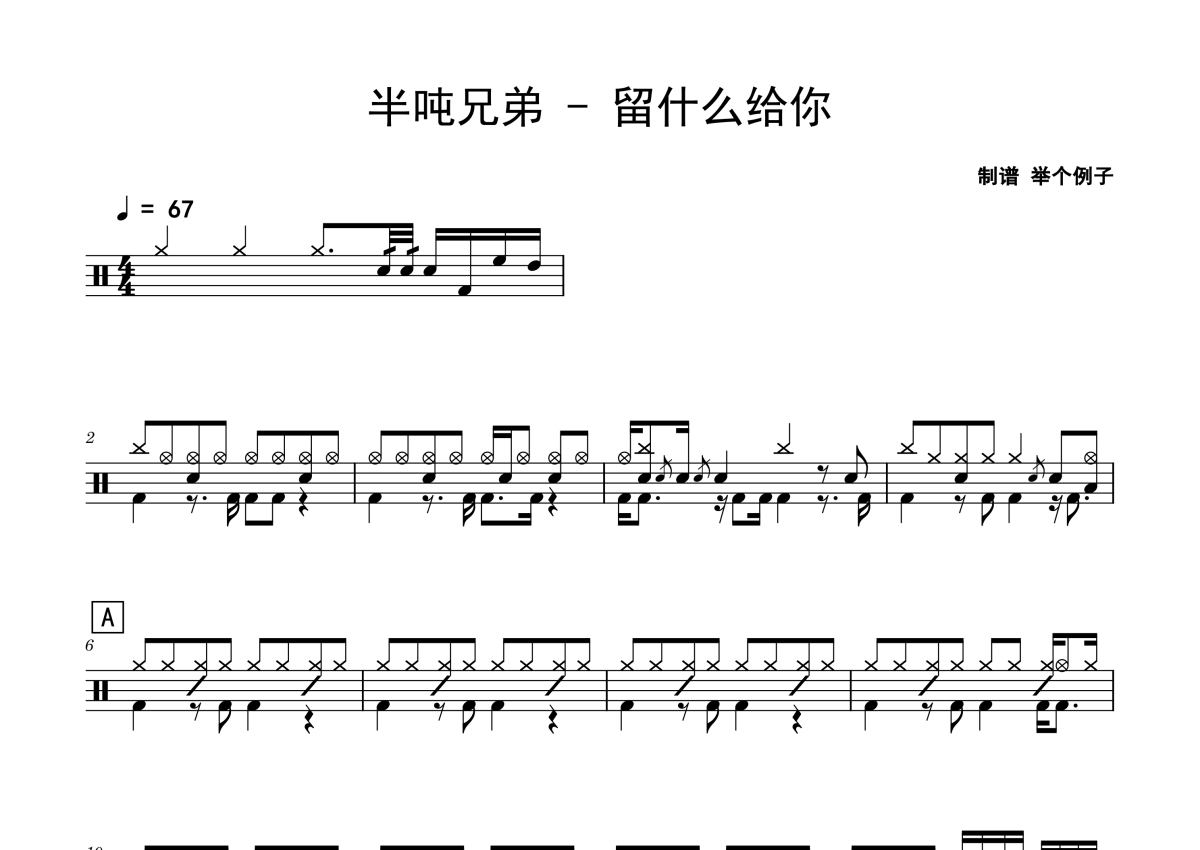 半吨兄弟《留什么给你》架子鼓谱