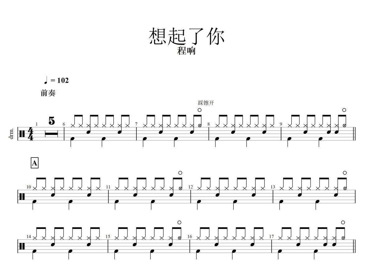 程响《想起了你》鼓谱 - 架子鼓谱