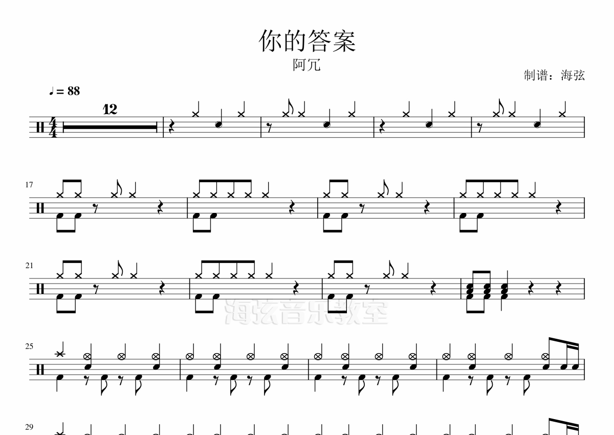 阿冗《你的答案》架子鼓谱