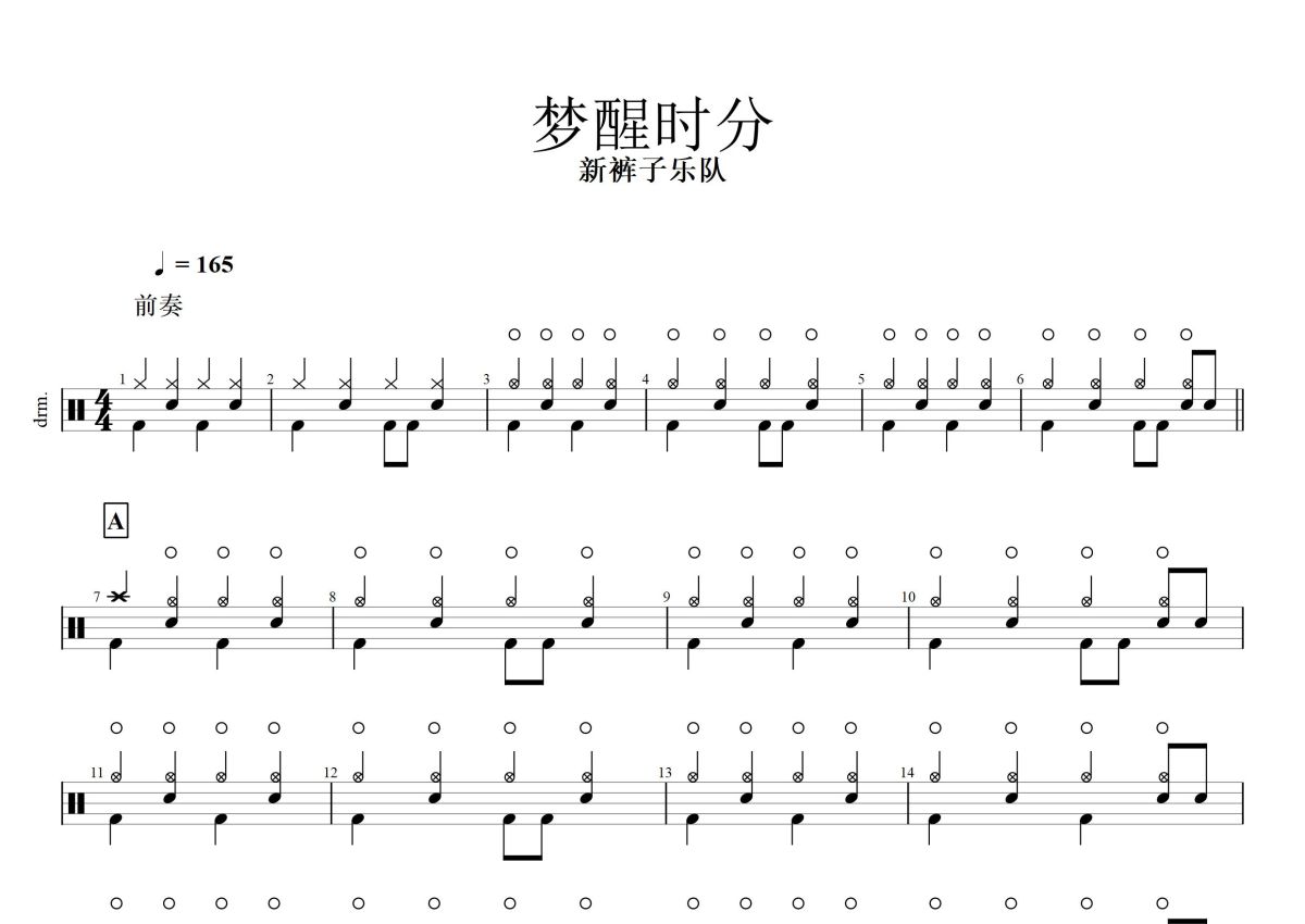新裤子《梦醒时分》鼓谱 - 架子鼓谱