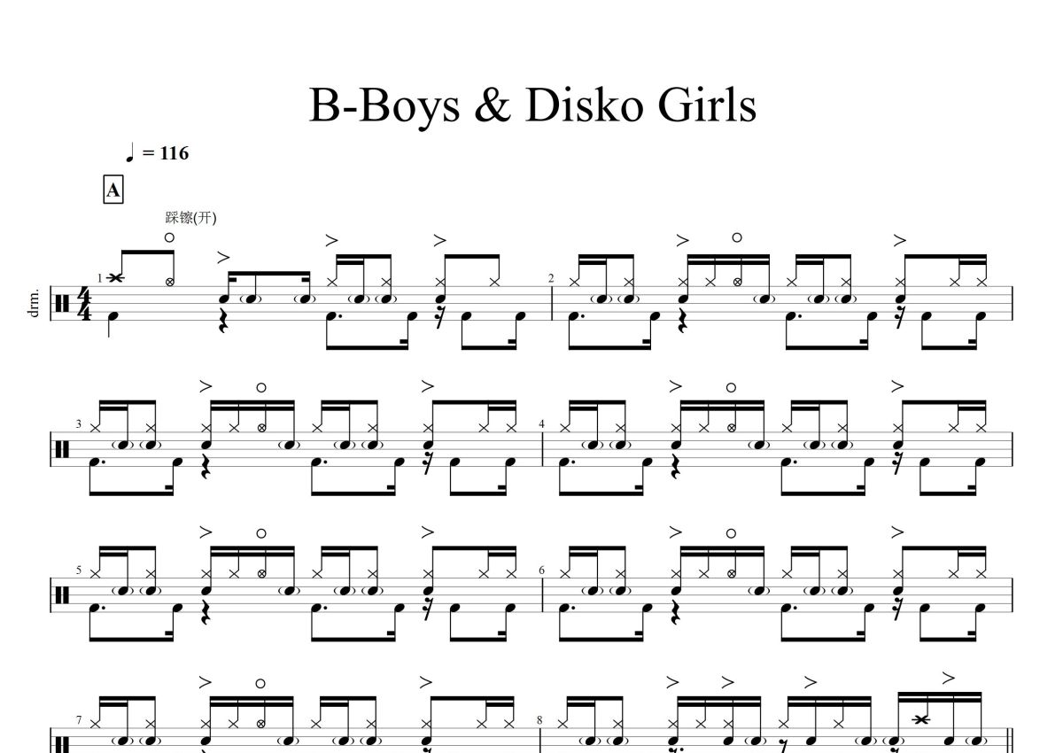 乔·德来尼《B-Boys Disko Girls》鼓谱 - 架子鼓谱
