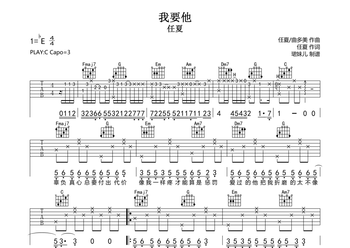 我要他吉他谱 - 任夏 - C调弹唱六线谱