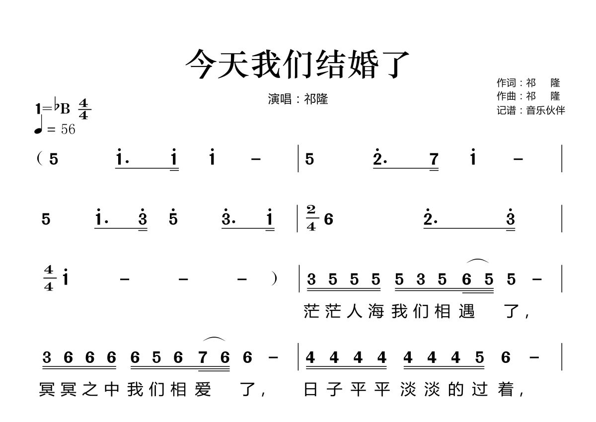 今天我们结婚了简谱 - 祁隆演唱