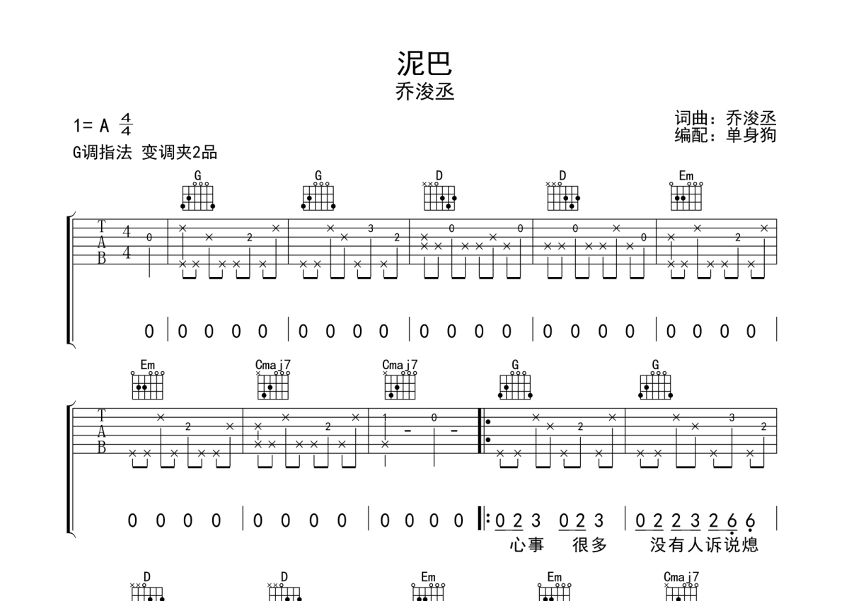 乔浚丞《泥巴》吉他谱 - G调弹唱六线谱