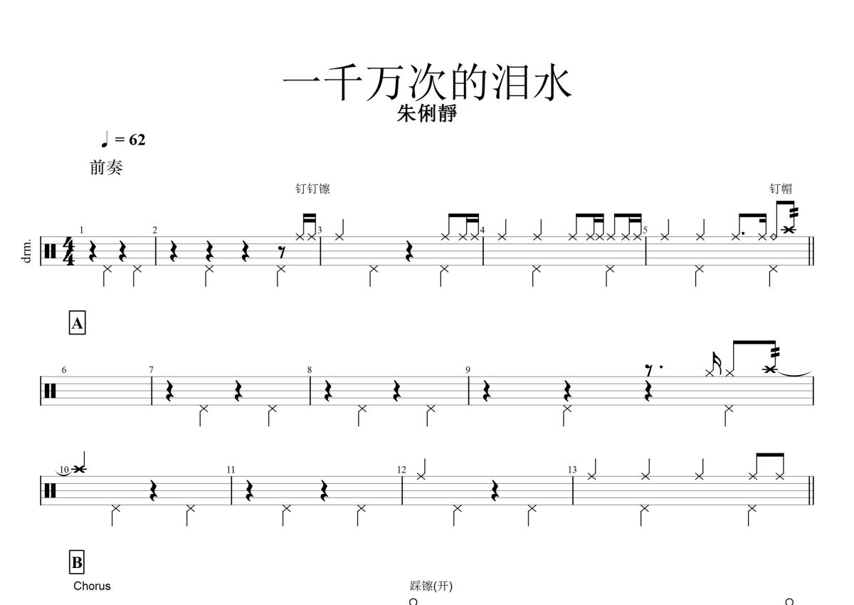 朱俐靜《一千万次的泪水》鼓谱 - 架子鼓谱