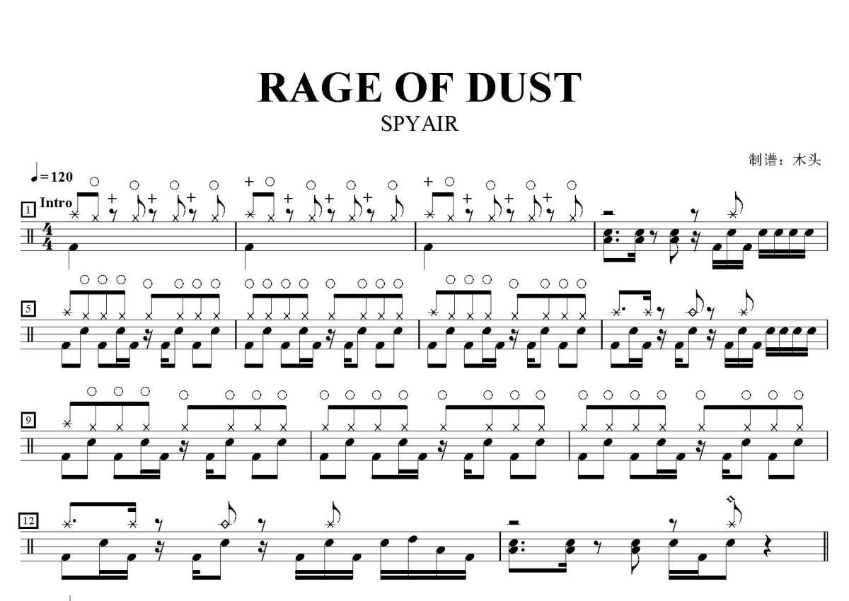 SPYAIR《RAGE OF DUST》鼓谱 - 架子鼓谱