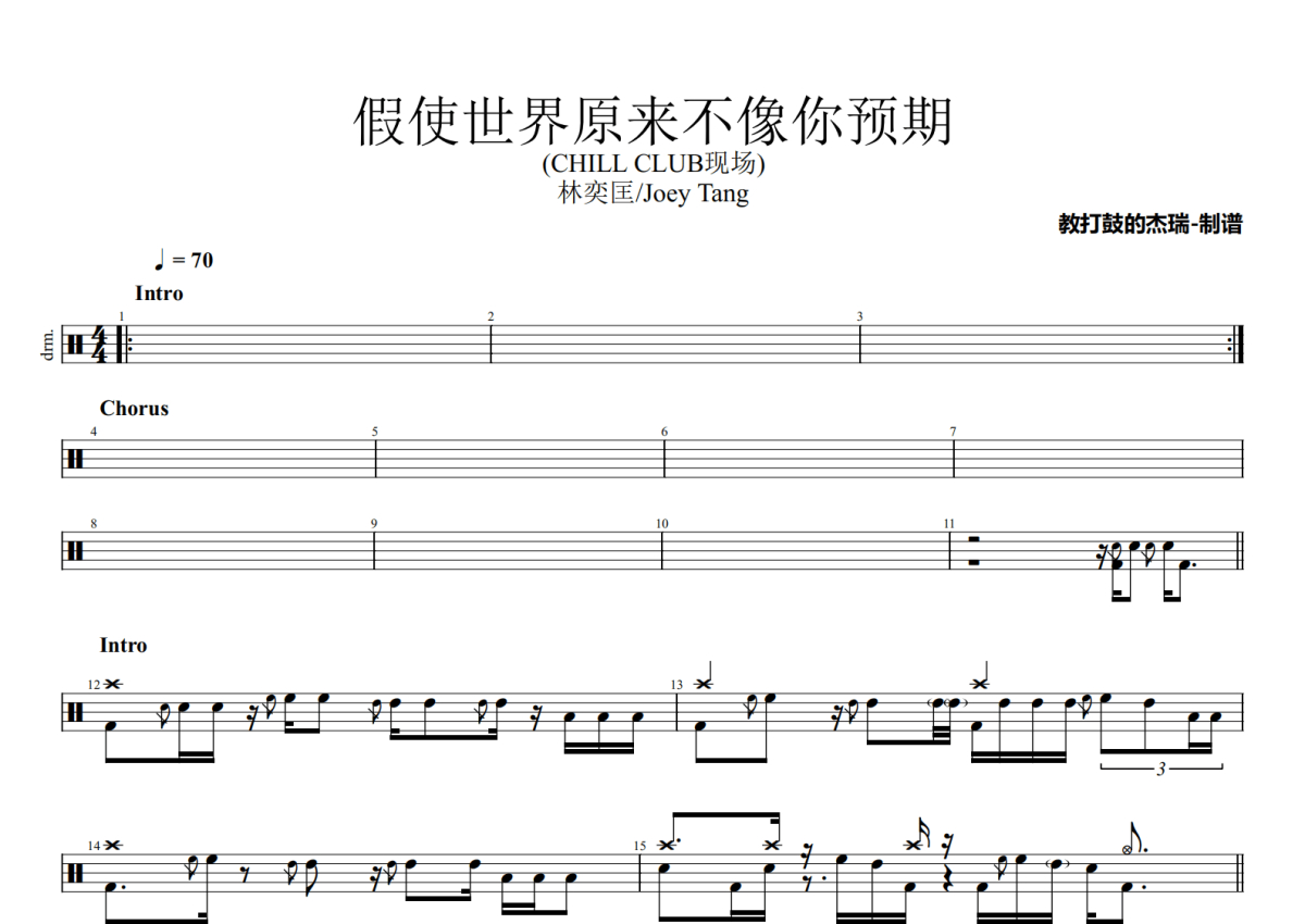 林奕匡/Joey Tang《假使世界原来不像你预期》架子鼓谱 - CHILL CLUB现场