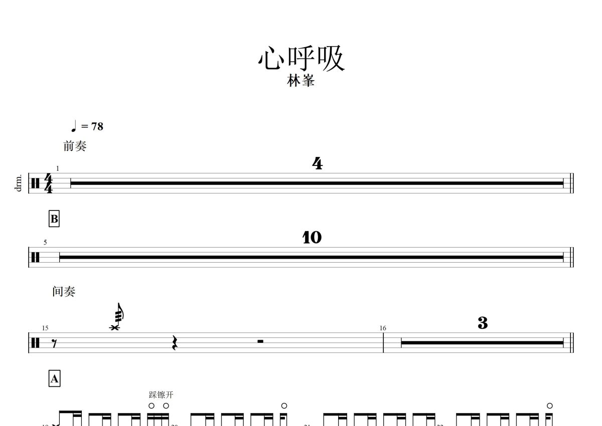 林峯《心呼吸》鼓谱 - 架子鼓谱