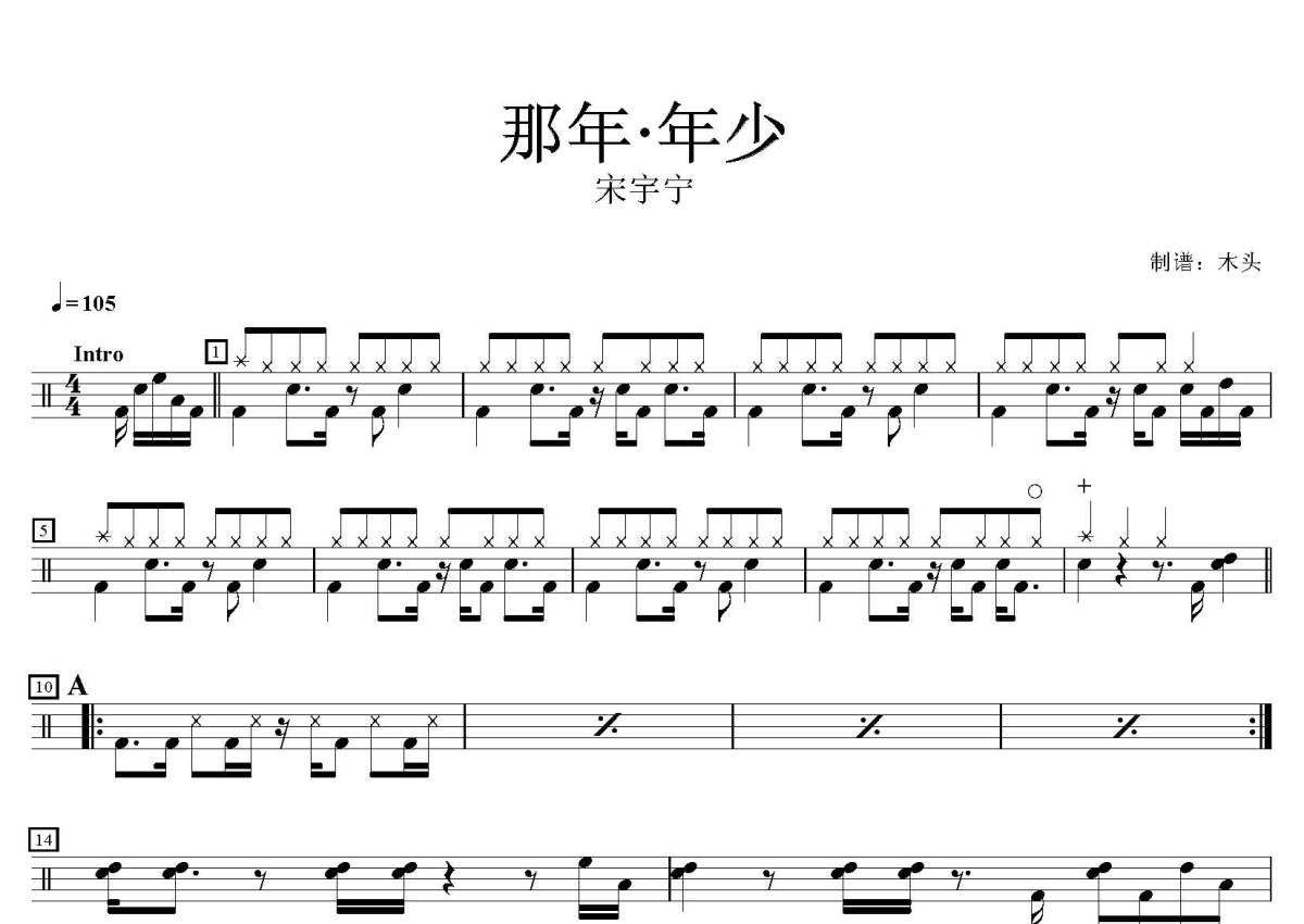 宋宇宁《那年年少》鼓谱 - 架子鼓谱