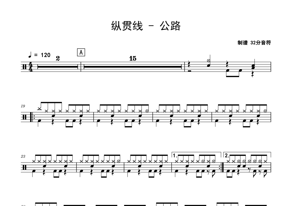 《公路》是纵贯线演唱的一首歌曲,拍号为4/4拍,歌曲速度为每分钟120拍,这份架子鼓谱共有三张高清图谱,图谱由 @Sawubona 编配上传,图谱使用五线谱编配,使用这份公路架子鼓谱,你将能够轻松地敲打出这首纵贯线的公路,快来尝试吧。
