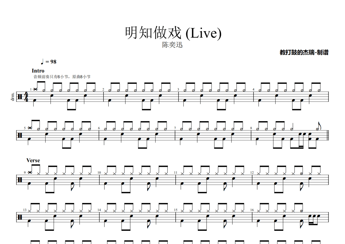 陈奕迅《明知做戏 (Live)》架子鼓谱