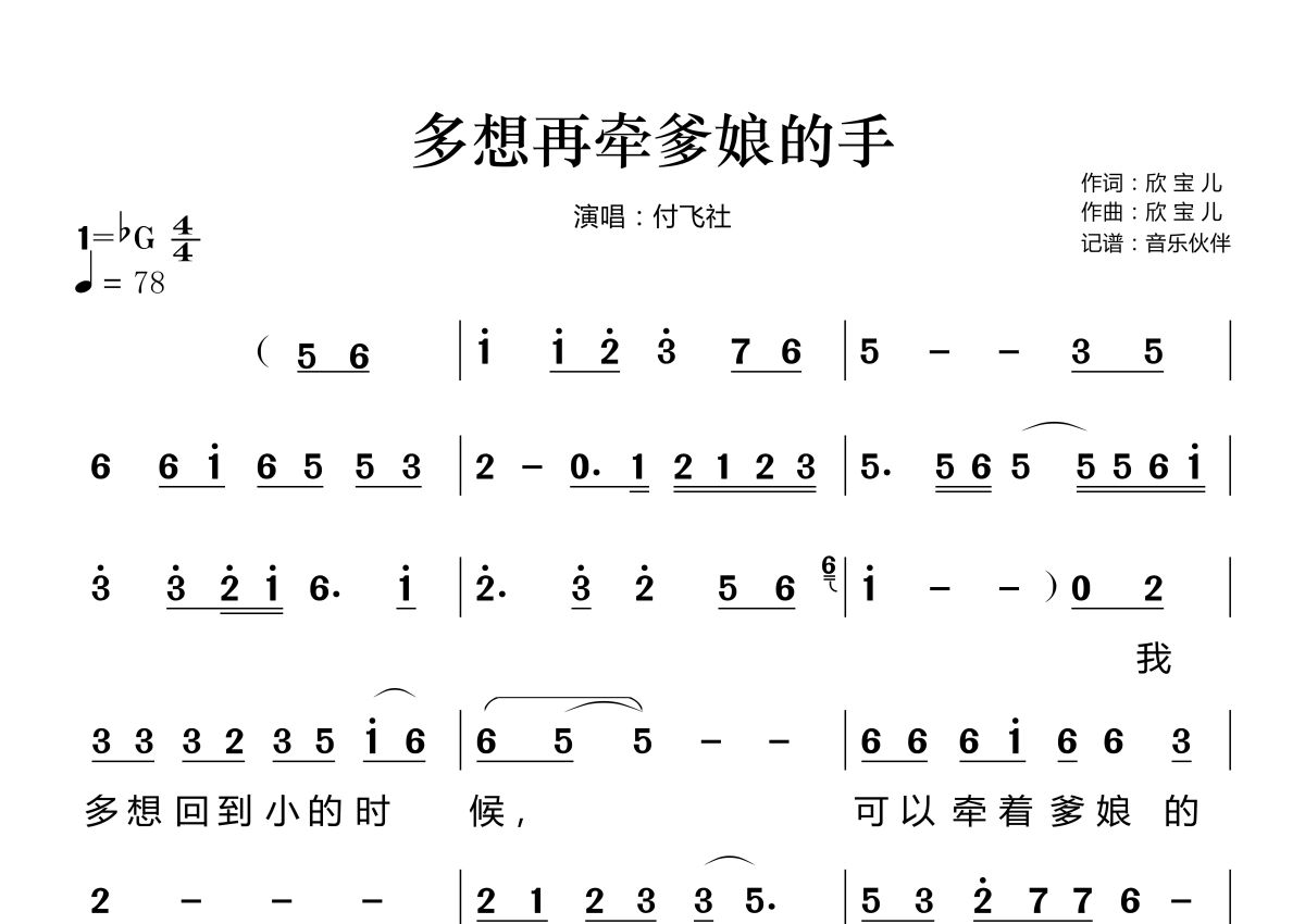 多想再牵爹娘的手简谱 - 付飞社演唱
