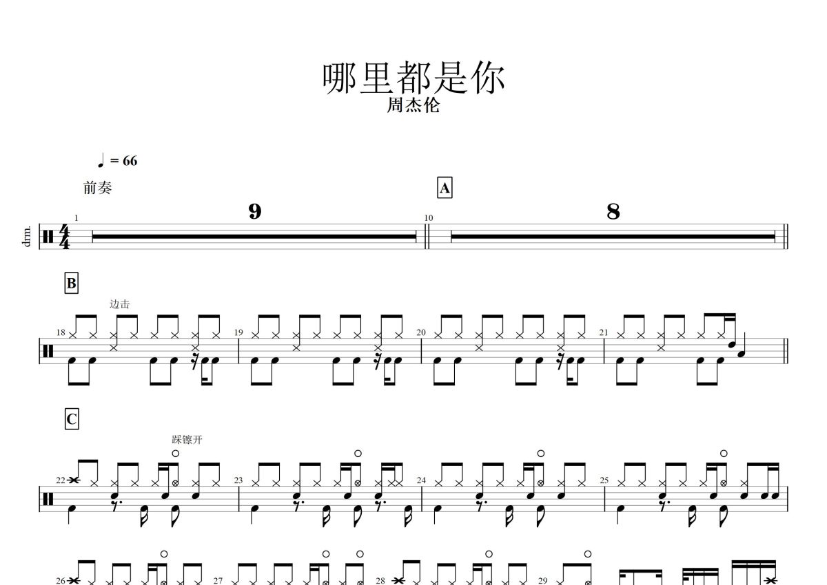 周杰伦《哪里都是你》鼓谱 - 架子鼓谱