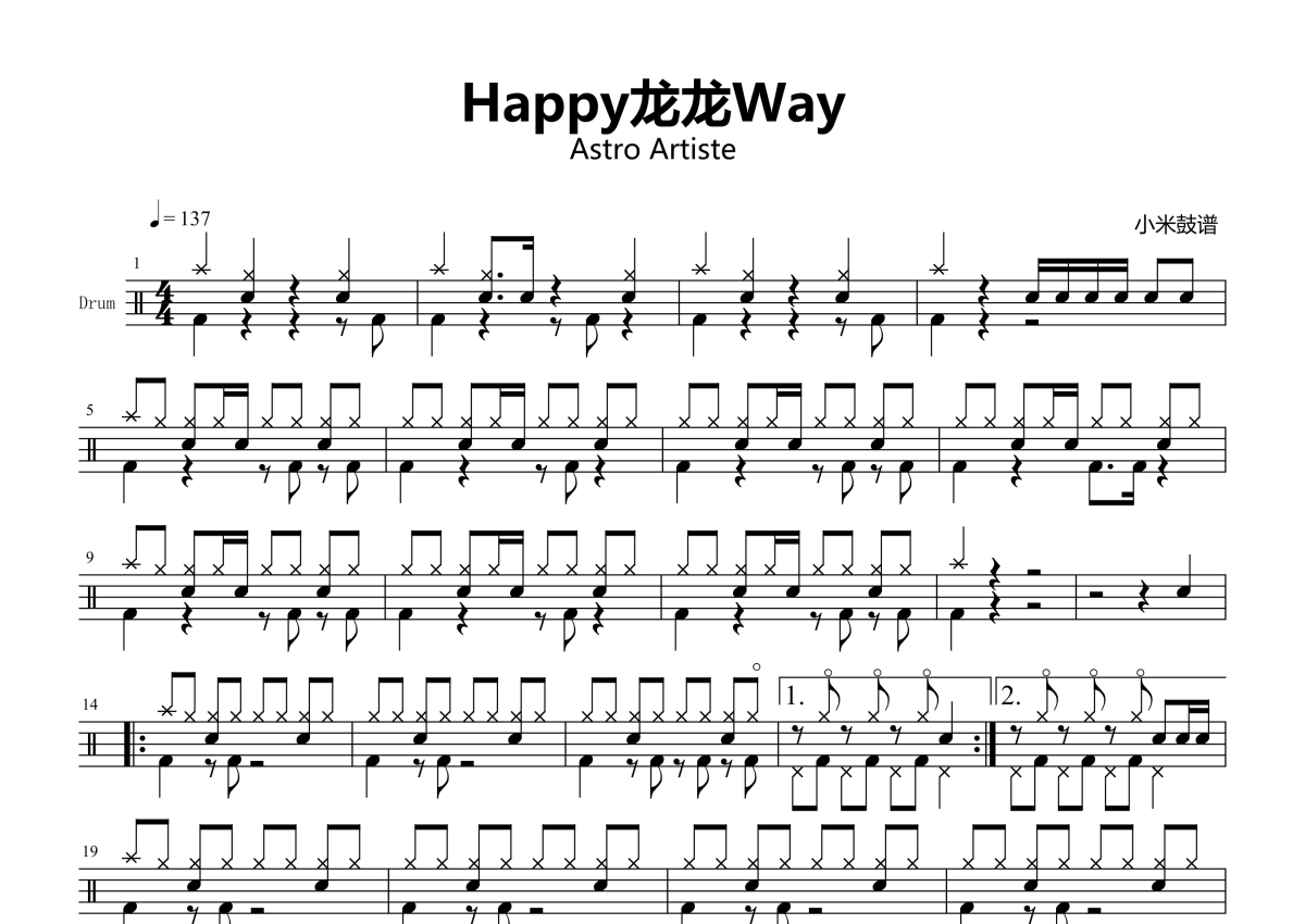 Astro Artiste《Happy龙龙Way》架子鼓谱