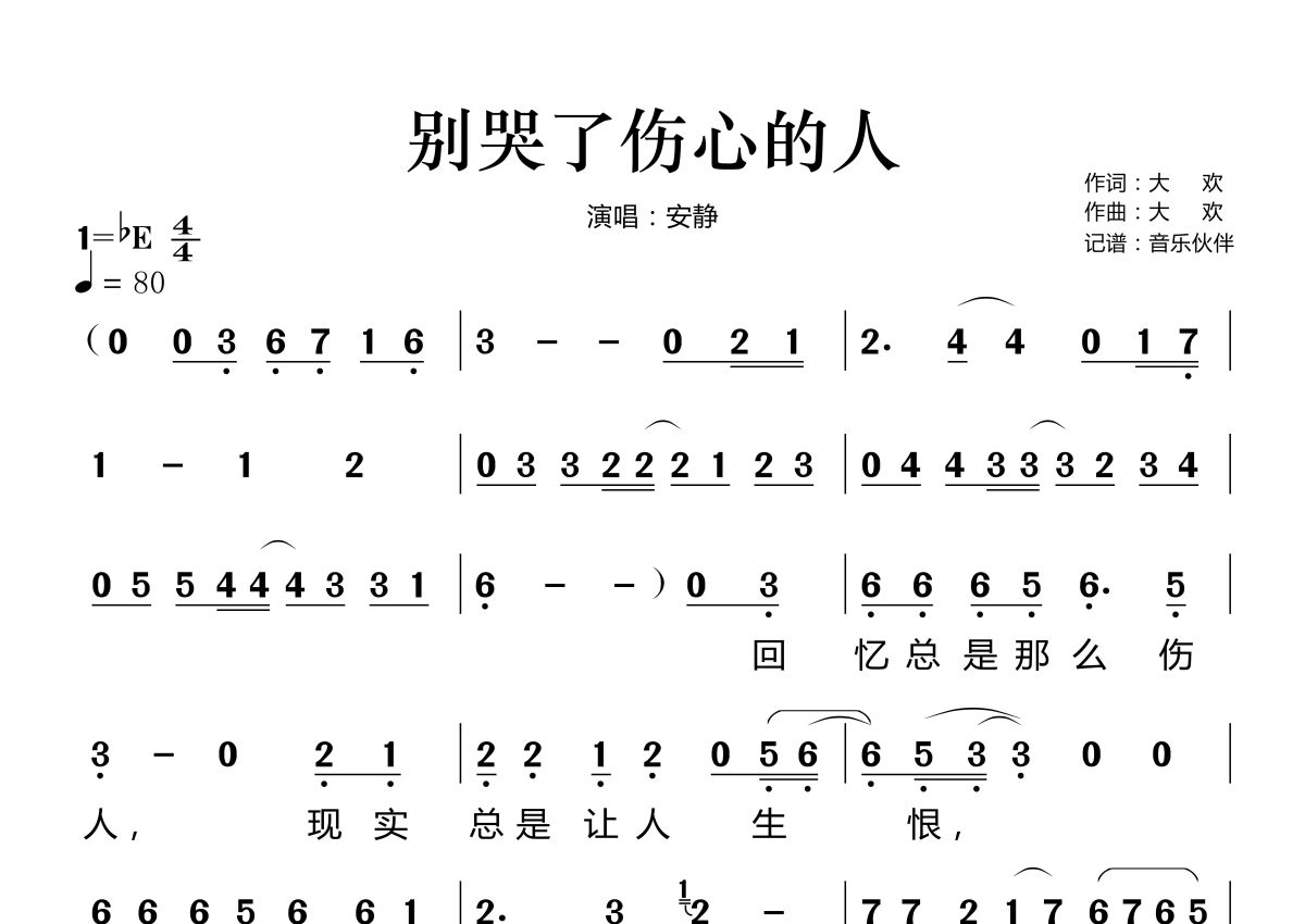 别哭了伤心的人简谱 - 安静演唱
