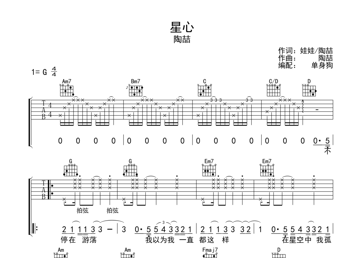《星心》吉他谱 - 陶喆 - G调弹唱六线谱