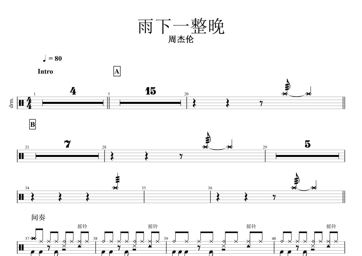 周杰伦《雨下一整晚》鼓谱 - 架子鼓谱