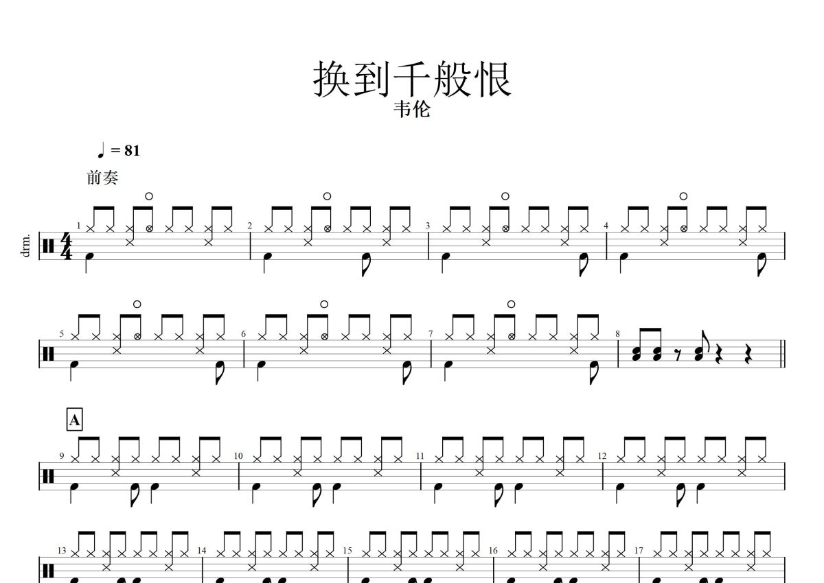 韦伦《换到千般恨》鼓谱 - 架子鼓谱
