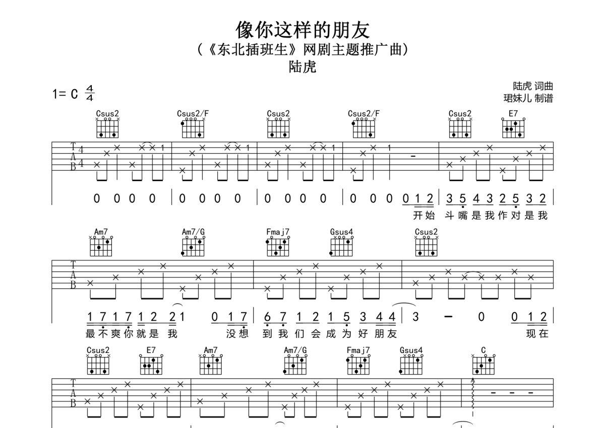 《像你这样的朋友》吉他谱 - 陆虎 - C调弹唱六线谱