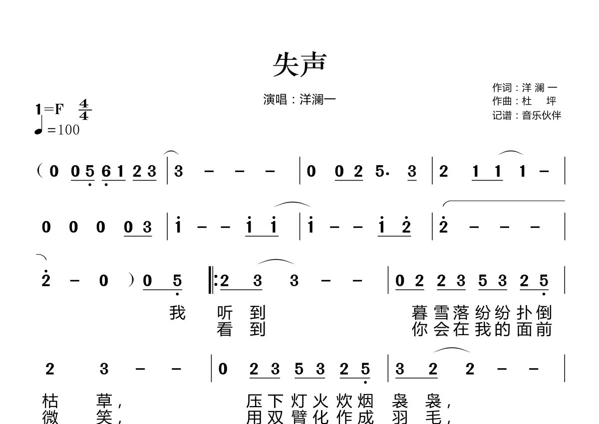 《失声》是洋澜一演唱的一首歌曲,这份简谱共有两张高清图谱,图谱由 @音乐伙伴 编配上传。