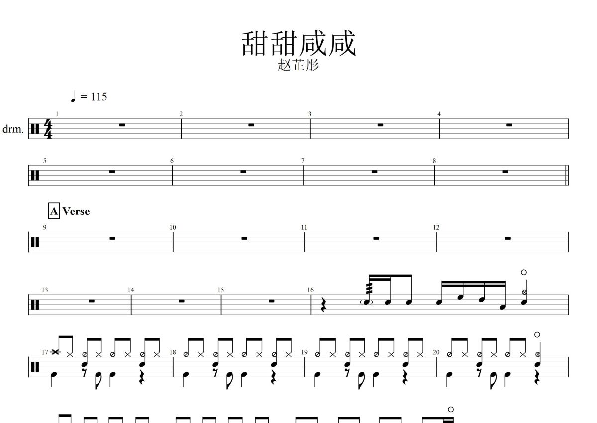 赵芷彤《甜甜咸咸》鼓谱 - 架子鼓谱