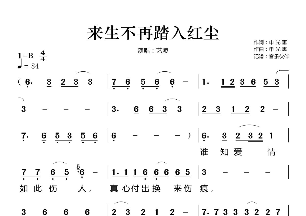 《来生不再踏入红尘》是艺凌演唱的一首歌曲,这份简谱共有两张高清图谱,图谱由 @音乐伙伴 编配上传。