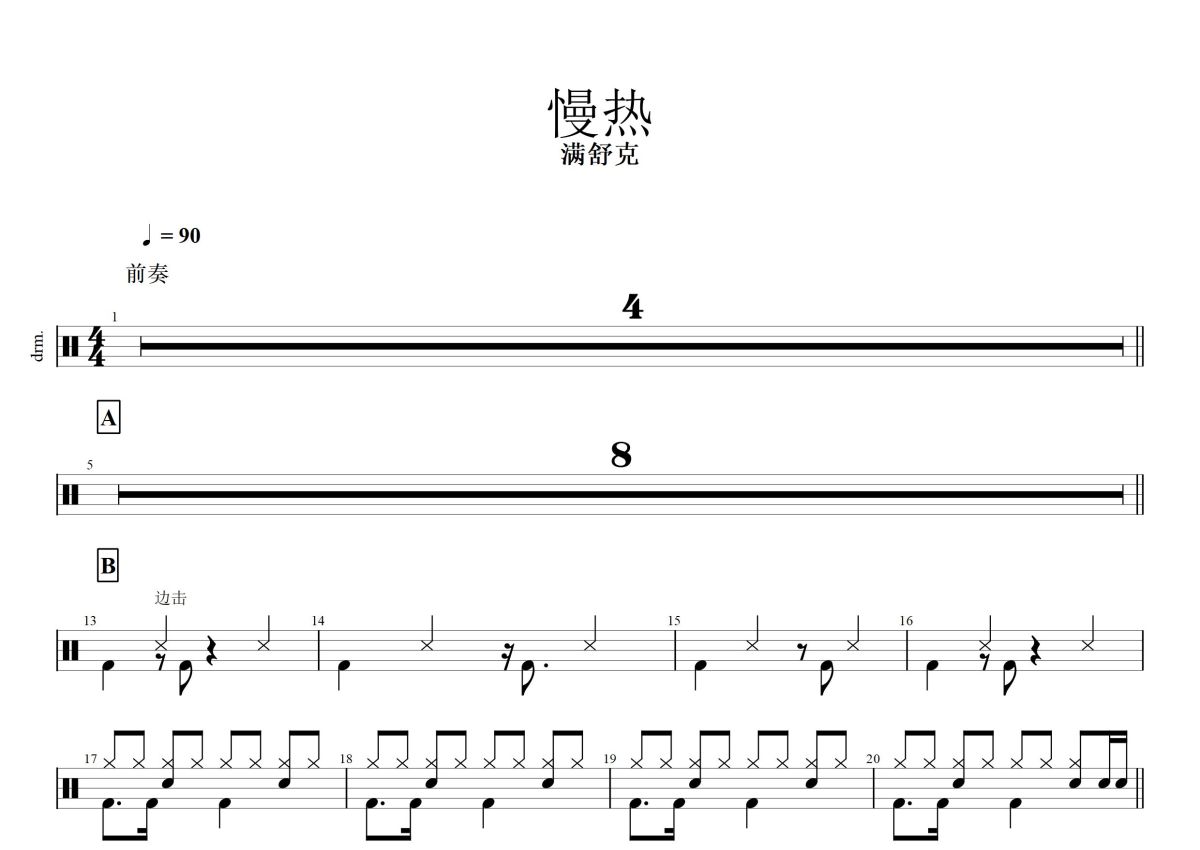 满舒克《慢热》鼓谱 - 架子鼓谱