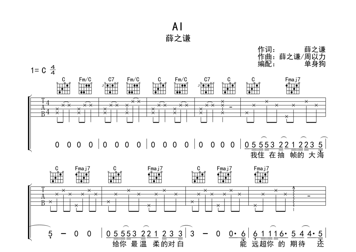 《AI》吉他谱 - 薛之谦 - C调弹唱六线谱