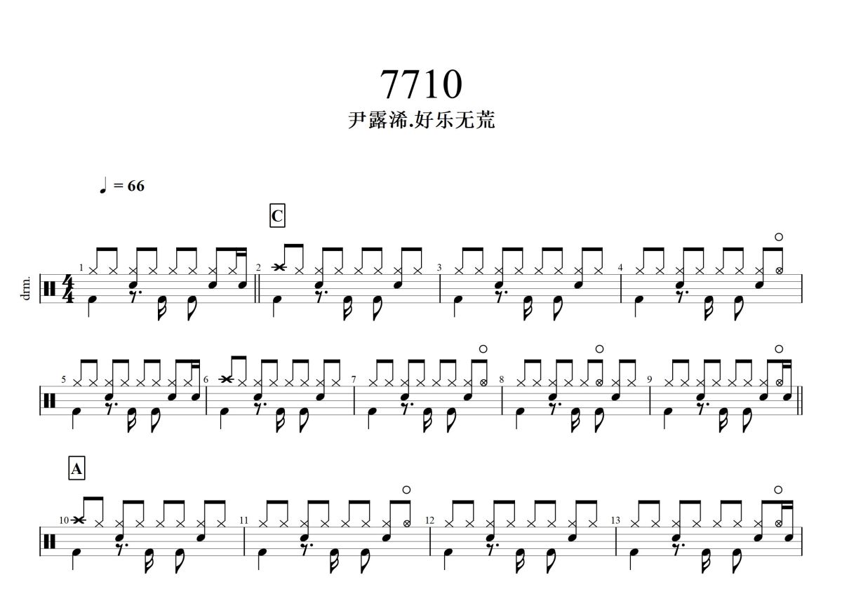 好乐无荒 / 尹露浠《7710》鼓谱 - 架子鼓谱